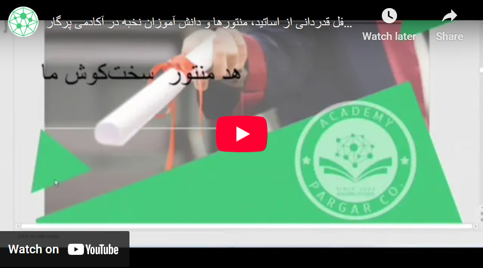 One thought on “محفل قدردانی از اساتید، منتورها و دانش آموزان نخبه در آکادمی پرگار